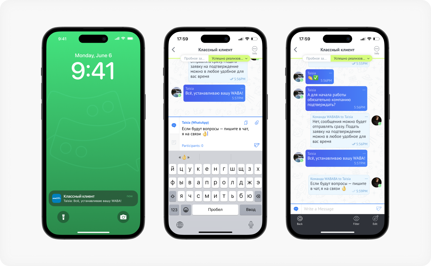 Для того, чтобы оставаться на связи со своими клиентами 24/7 в WABABA появился новый инструмент — сценарии. Каждый из них вы можете настроить под нужды своего бизнеса. После определенных действий в WhatsApp клиента будет направлено автоматическое сообщение. Мгновенная обработка лидов, ответ на запрос в нерабочее время, при пропущенном звонке и качественное завершение сделки — все это теперь доступно в виджете.